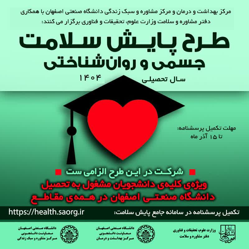اطلاعیه پایش سلامت جسمی دانشجویان جدیدالورود 1404-1405